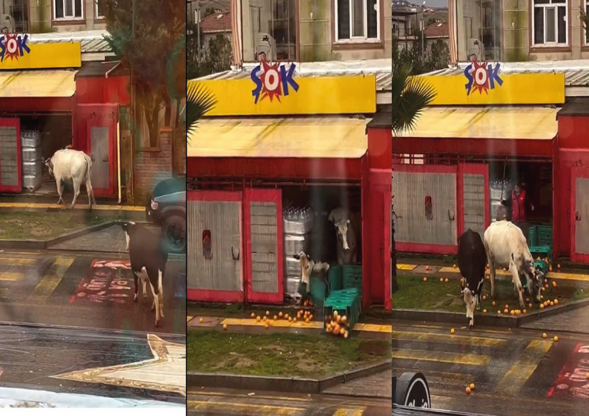 Şile’de bir mahallede ŞOK Markete giren inekleri mağazanın karşısında ikamet eden bir vatandaş tarafından Cep telefonu ile kaydedilen görüntüler çok sayıda beğeni ve yorum alırken, görüntülerde, markete giren iki ineğin marulları yediği, bu sırada temizlik yapan bir personelin elindeki paspasla hayvanları uzaklaştırdığı ve girişteki meyve sebze kasalarının devrilme görüntüleri şaşkınlık içinde izlenirken yüzleri gülümsetse de bölge genelinde yerleşim alanlarının artmasıyla ineklerin belki de otlayacak yer bulamaması ve aç kalınca iş başa düştü diyerek mağazaya aç karınlarını doyurmak için girmiş olabilirler şeklinde yorumlanmakta..